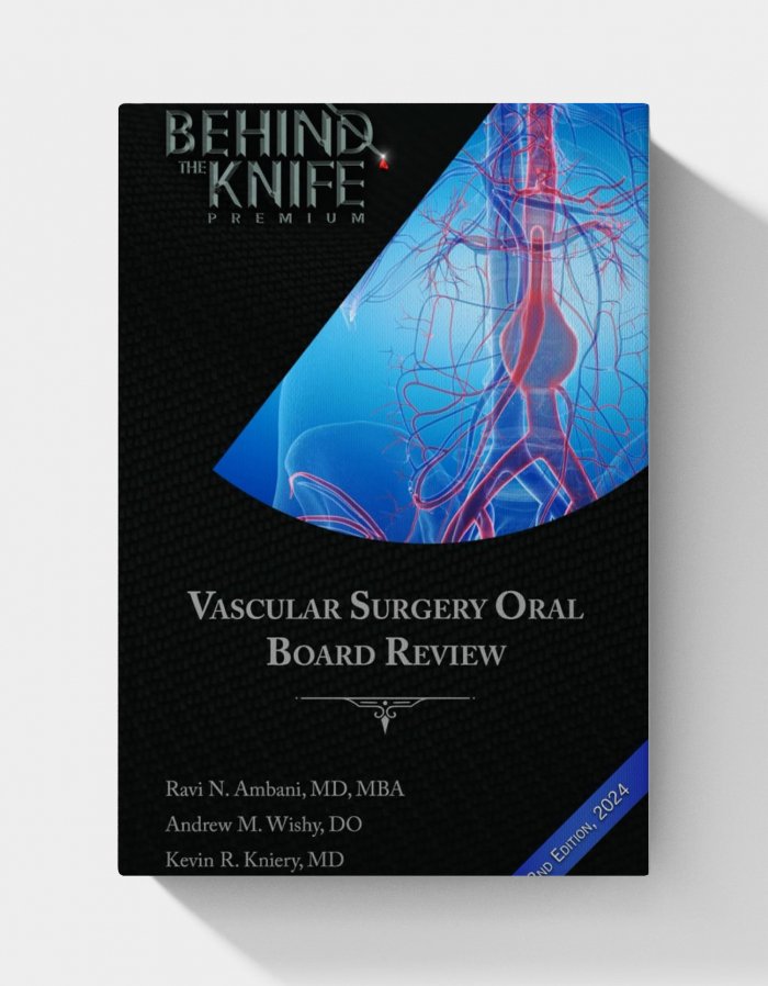 The 2nd Edition of Vascular Surgery Oral Board Review: Behind The Knife Premium, authored by Drs. Ravi Ambani, Andrew Wishy, and Kevin Kniery were published on March 27, 2024. This comprehensive guide is tailored for vascular surgery trainees preparing for the Vascular Surgery Board (VSB) Certifying Exam and for practicing surgeons seeking a concise review of critical topics.
